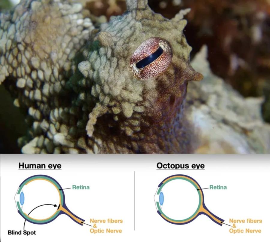 章魚和人類眼球結構對比|圖片來源:OctoNation